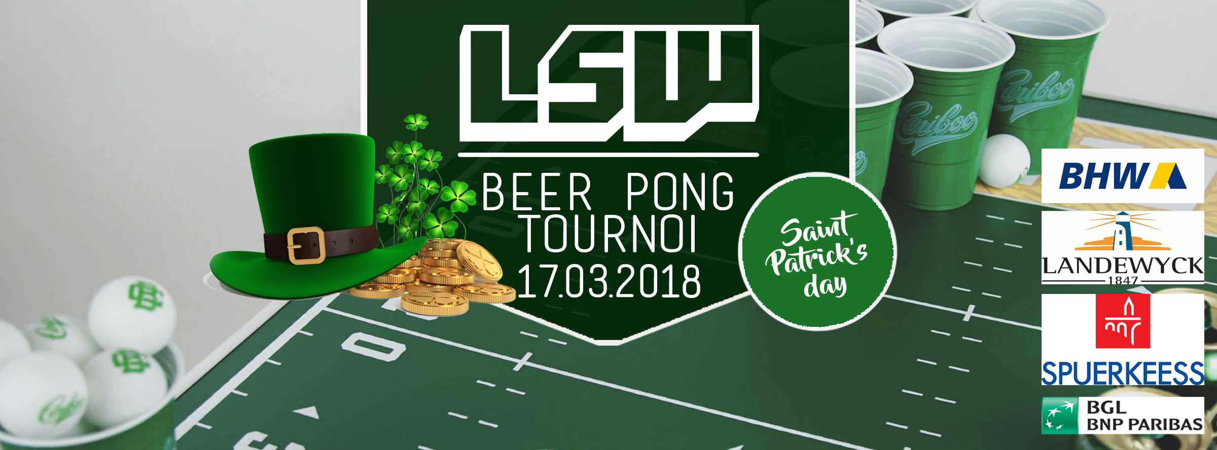 Den LSW Comité invitéiert iech op St.Patricks Day, den 17. Mäerz 2018, an den Weberknecht zu 1ter Editioun vun eisem Beerpong Tournoi!